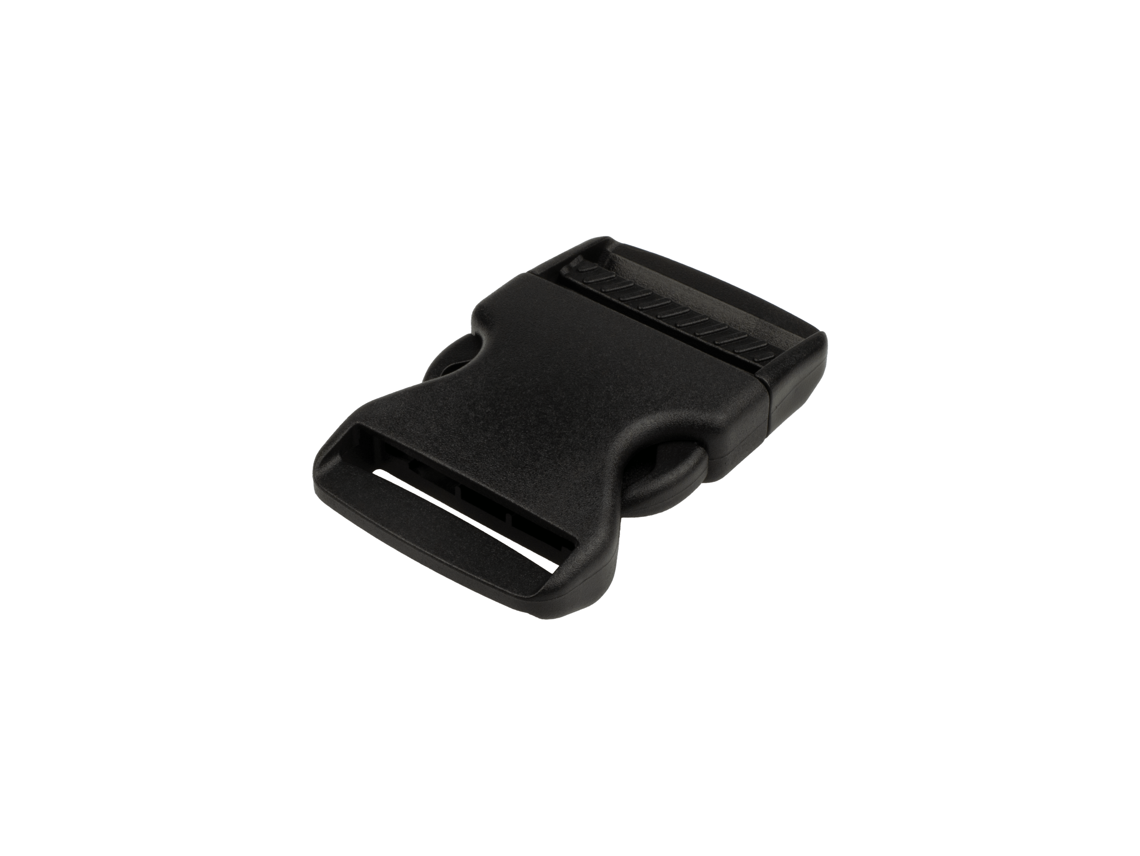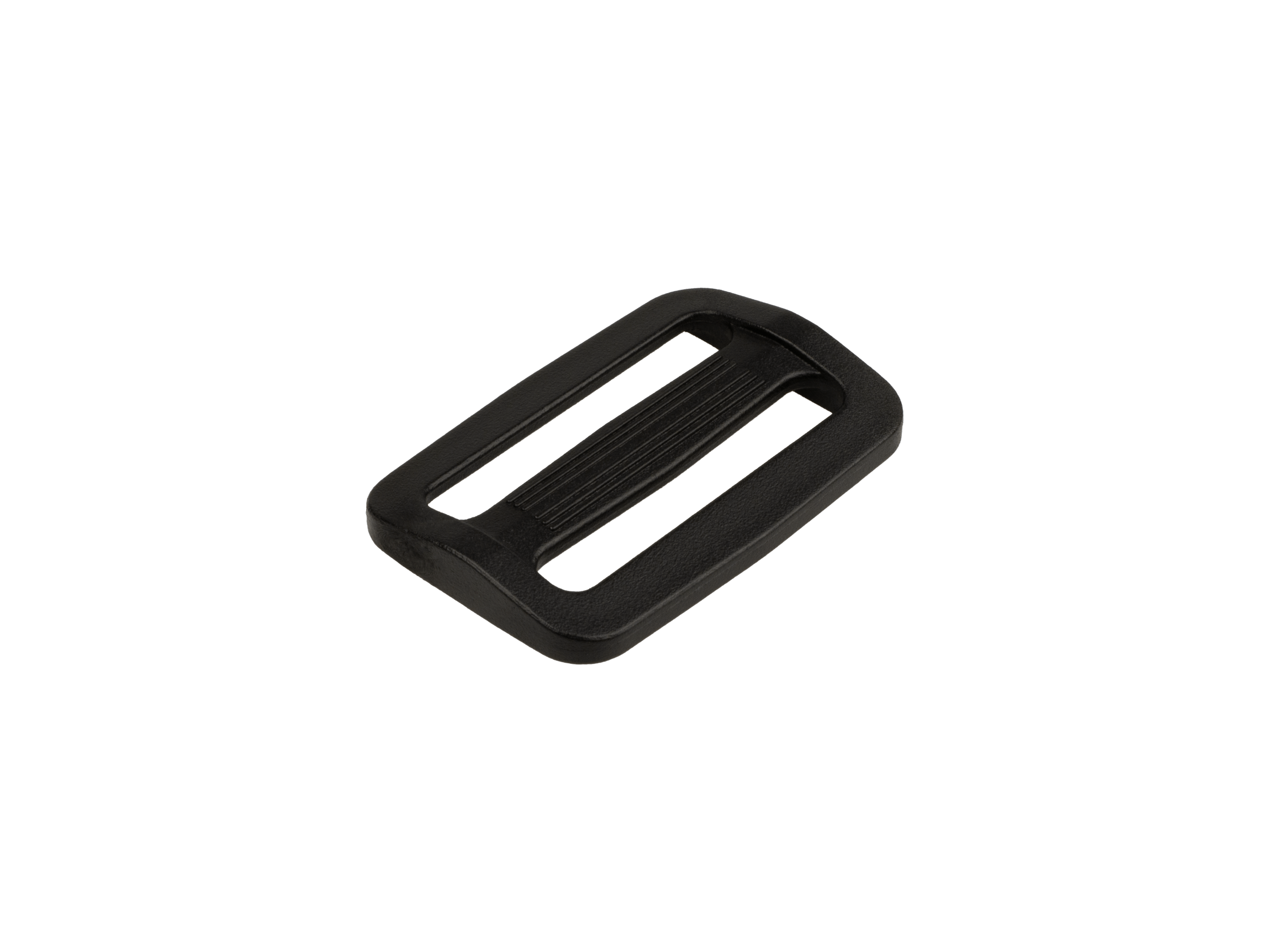 Plastic injection molded heavy duty ladder lock for secure webbing strap adjustments. Available sizes are 1" to 2" in black POM material.